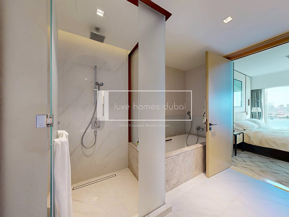 - Balcony with stunning Creek and Burj Khalifa views