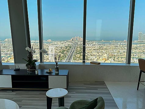 - Panoramic views of Palm Jumeirah, the Arabian Gulf, and Dubai skyline