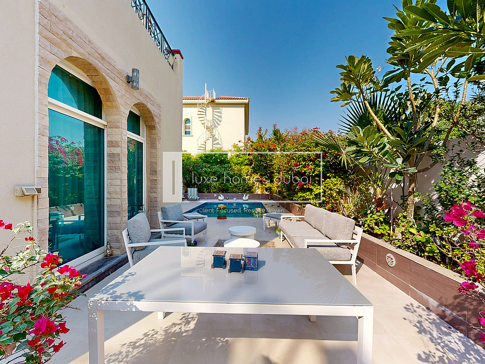 luxe homes Dubai is proud to present this elegant 5 Bedroom Villa in Aldea, The Villa, featuring spacious interiors, upgraded finishes, and a beautifully maintained private outdoor area with a swimming pool. This villa offers a warm family ambiance with bright living spaces, landscaped gardens, and well-designed rooms ideal for comfortable living.